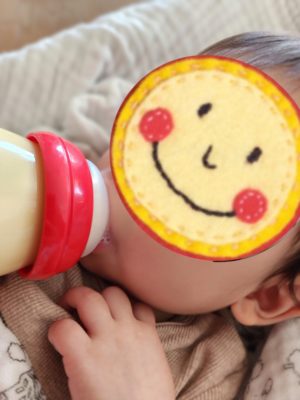 お昼寝の前はミルクいらないよ〜! と、ブンブンお顔を振ってなかなか飲んでもらえないのですが、起きてからはすこ〜し飲んでくれます✨