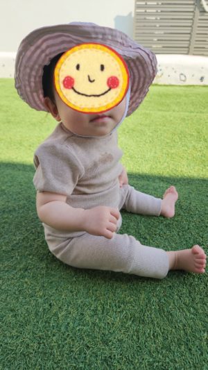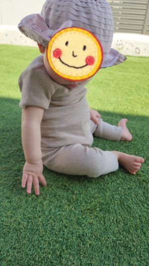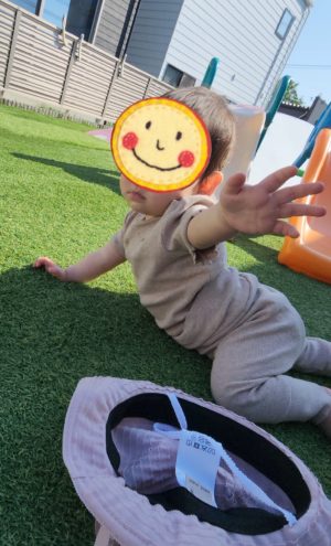 これから暑くなってくるので、かぶり慣れてほしくて、頭に乗せますが、すぐにこうなっちゃいます👒