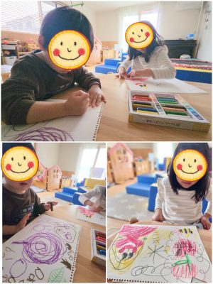 お絵描きを始めると、、、紙いっぱいに楽しい物語が広がっていきました🌷