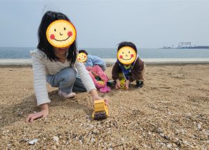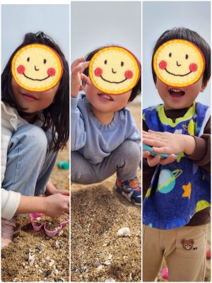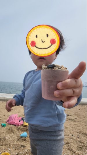 お砂にたっぷり触れて、いろんな形を作って、崩して、楽しい笑顔が止まりません♬