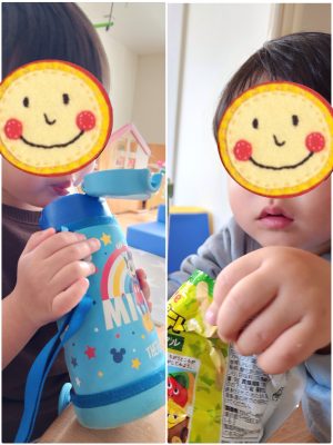 ミルクも自分でもつ〜! と、ぎゅっと握ってごくごく飲みました😋