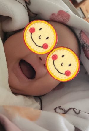 抱っこをしている時にはニッコニコなのですが、ごろ〜んとするのは嫌なようでプンスカさんです♡
