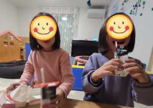 楽しみにしていたハッピーセットのおもちゃはもうなかったのですが、、、こっちのでもいい〜! と、すぐに切り替えてくれる2人🍟