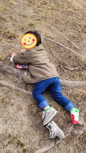 しばらく転んだままだったのですが、、、いてて〜💦 と、言いながら立ち上がり、またすぐにかくれんぼが始まりました♬