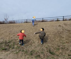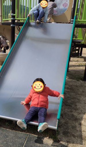 おっきな滑り台をみんなで一緒に滑ってきたり、先に行くよーーーー! と、滑り出したり、みんなでケラケラ笑い合いながら滑り続けました!