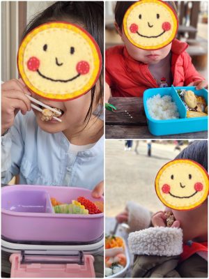 冷えたお弁当が苦手な女の子。。。 お出かけ先で食べるとなかなか進まないのですが、、、今日はなんだかいつもとちょっと違う!!