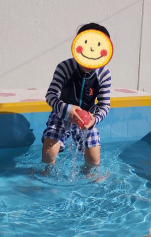 水風船ボールにもたっぷりお水を入れて、ブッシャ〜! と、お水を出して大笑い〜 でした♬