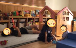 ダラダラ〜っとしたり、追いかけっこしたり、おもちゃでまったり遊んだりとしながら過ごすみんな。