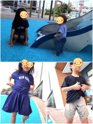 遊具の下からバァ〜✨ と、出てきたり、、、噴水のところで濡れてしまった。。。。 と、しょげたり、、、色々でした🤣
