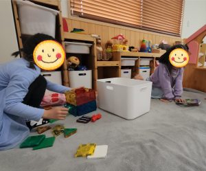 ブロックを引っ張り出してくると、お城作りが始まりました!