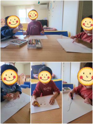一人がお絵描きを始めると、、、やってみたいなぁ〜♡ と、みんなが集まります🖍️