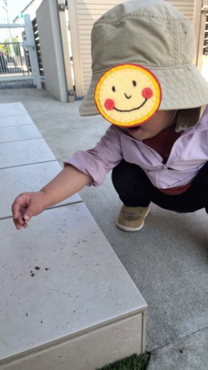 ダンゴムシさんとも仲良し♡ ツンツンしたり、持ってみたり、、、転がしたり、大急ぎで逃げていきたいダンゴムシさんを手放しません。