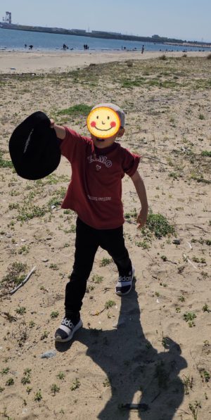 敬礼!!!! と、写真を撮って楽しんでいたら、、、ビューン!!!! と、勢いよく吹く風にせんせいの帽子が飛ばされちゃって・・・・