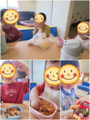 たくさん遊んで笑ったらお腹も空いたようです🍙