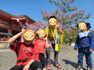 帰ろうね〜✨   綺麗なお花の前でパチリ📷