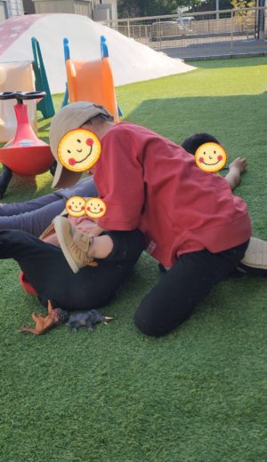 やりたい遊びも楽しんでおりますが、小さな子たちが近くに来てくれると、優しい声で語りかけ続けてくれます♡ なので、みんなもルンルンで寄ってきます♡
