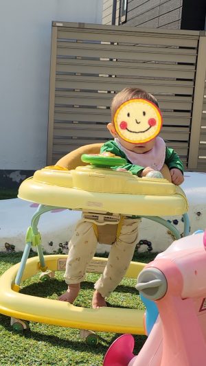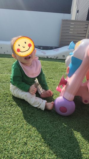 チョンチョンと足を動かしてちょ〜っとずつ進めるようになってきているんです♡ でも、、、思うように進めなくなると、、、プンスカ怒っております🤭