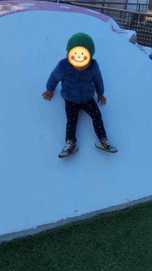 シューンと滑って、次は何しようかなぁ〜???? と、キョロキョロお友達の様子もチェック!