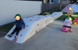 凸凹お山のスロープはゆっくりゆっくり〜! と、進んで、順番で滑ります♬