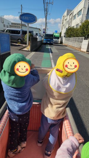 大好きな乗り物を沢山みることができたので、うれしくって、テンションの高いみんな!
