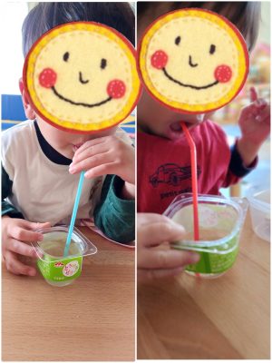 とろとろゼリーはスプーンですくってもスルンと逃げられちゃうので、ストローでチューチュー飲みました♬
