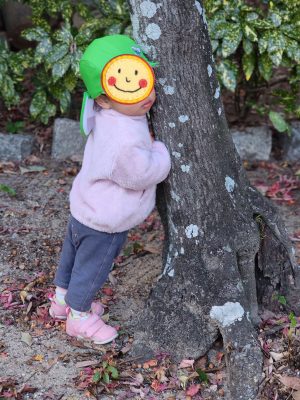今度は木にピッタンコ〜! むぎゅ〜!!!