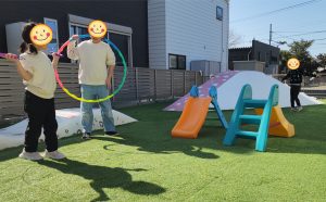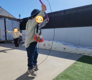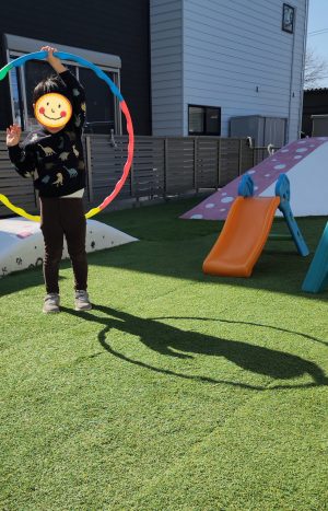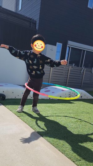 フープを縄跳びにしてぴょんぴょん跳ねたり、走ったり、体を動かしてスッキリしたようでした✨
