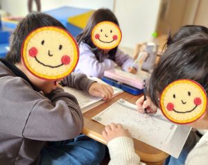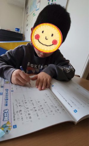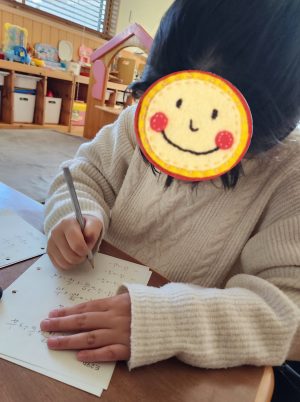 みんながお昼寝している時なので、もうちょっと静かに鉛筆を動かして欲しいんだけど・・・ と、声をかけると、にやっと笑って、音を控えめにしてくれますが、のってくるとまた カツカツカツ〜 と音が響きました🤣