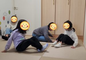 お尻で移動しながらの追いかけっこです! 狭い場所なので、あっという間にタッチできちゃうので、鬼がコロコロ変わっていきます🍑