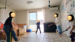 ジッと集中して作っていたので、ぐ〜んと伸びをして、よーし遊ぶぞー!!! と、気合も入ります!