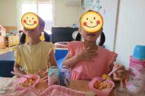 お弁当を食べながら、いろんなお話を聞かせてくれます🍙 楽しかったお出かけ先のこともたくさん教えてくれるので、いいなぁ〜✨ せんせーも行きたいなぁ〜✨ 今度は一緒に行ってもいいかなぁ〜? と、伝えると、、、