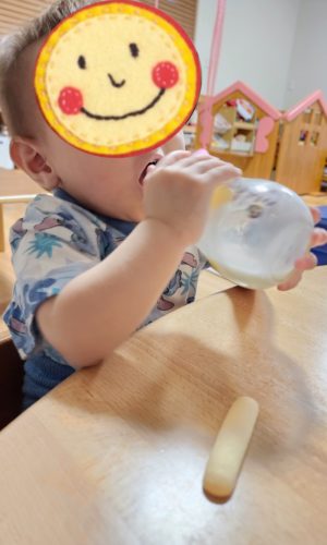 ちょこっと小腹が空いてくると、自分で持ってゴクゴク〜!!!! おやつもおいしかったね😋