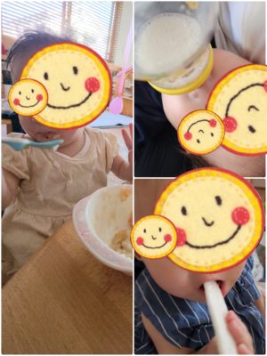 眠たいけど、、、ご機嫌斜めだけど、、、ミルクを飲むとコロッと変わったので、ご飯も食べられるかな??? と、準備してみると、パクパク食べてくれました✨