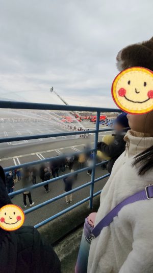 放水作業もいつもは下から見ていたのですが、上から見ると、同じ目線のところにお水がビューンと飛んでいく様子を見ることができて、すっごいね〜!!!!! と、釘付けでした✨