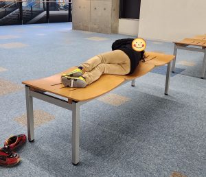 眠くなってきた〜!!! と、ベンチでゴロゴロ〜