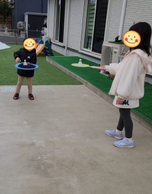 お外でキャッチボール! ふわふわとぶ羽をキャッチしたいのですが、、、なかなかうまくいきません😆