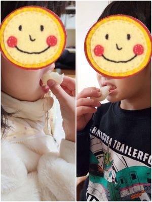 2人もきび団子の美味しさにトリコでした♡ もっと食べたい〜! 歯にくっつく〜!!! と、言いながら頬張っていました😋