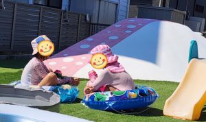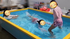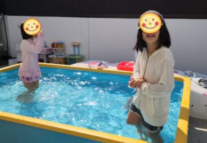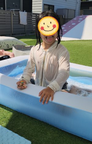 この後、ぐっすりお昼寝をして、楽しみにしていたおやつを食べると、もう一回プールする〜!!!! と、お迎えのお時間直前まで楽しんでおりました♬