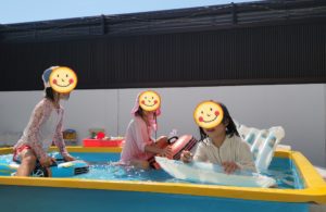 みんなが浮き輪を使うと、プールが狭くなっちゃうのですが、、、ポンポン当たり合いながらあっちへこっちへ〜と揺られます♬