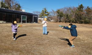 サンタさんにもらったおっきな銃を持ってきてくれたので、的を書いて早速飛ばします!!!