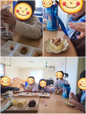 このおやつものせたらおいしいよ〜! これもう一個のせようかなぁ〜✨ などなど めいっぱい盛り付けをしてみんなで頬張りました😋🎂