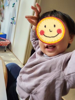 お祭りでいただいたスライムをみんながやっているのをみて、おんなじようにやりたい! と、手を伸ばしてくれるのですが、、、