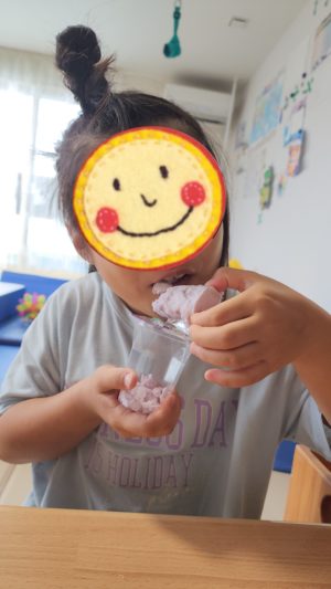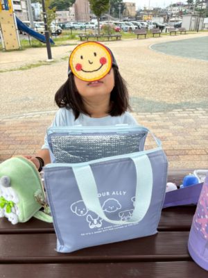 楽しみにしていたおやつは、、、甘すぎちゃったようで、パパにあげる・・・ と、持って帰りました😂