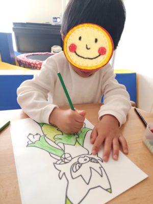 好きなイラストをリクエストしてくれて、丁寧に塗り続けます♬