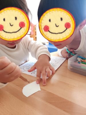 丁寧に塗ったり、大胆に塗りつぶしたり、チョキチョキしたり、ニヤニヤしながら楽しんでおりました♬