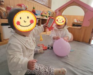 ゆらゆらしている風船に触れて、飛んでいく風船をポンポン叩いて追いかけます🎈
