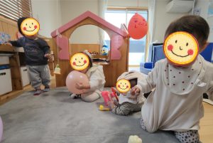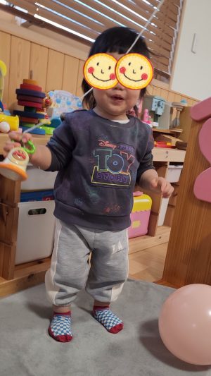 アンパンマンの鈴の音を聞きながらバァ〜♡ と、お顔を出してくれる時の笑顔もとびっきりでした♡