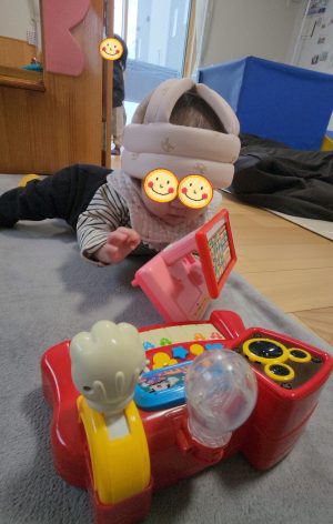 お気に入りのおもちゃにいっぱい触れて、いろんな音が聞こえてくるのを楽しんだり、ハイハイのスピードもグンとあがって突き進みます💨