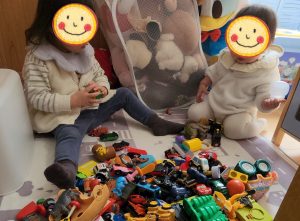 到着するなり、がっしゃ〜ん!!!! と、トミカの玩具箱をひっくり返して全部出しました😆