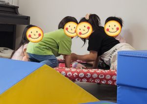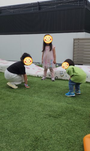 鬼ごっこしよ〜!鬼決めしよ〜!!!! と、足を出します! 鬼が決まると、、、